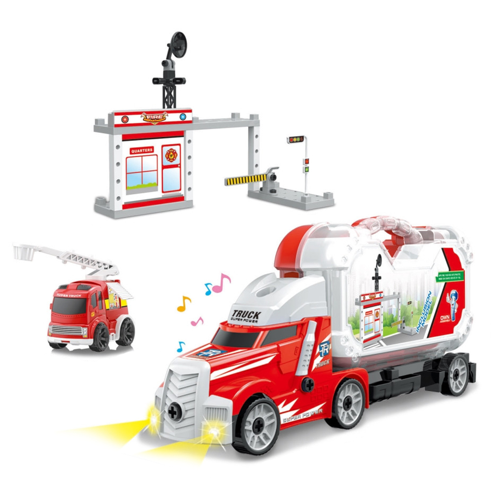 Hasiči potřebují tvou pomoc! Poskládej si hasičskou základnu, vyjmi kufr z náklaďáku a použij součástky na opravu kol! Sada obsahuje jedno velké auto s kufrem na opravu, malé pomocné vozidlo a součástky na složení záchranářské základny. Auto vydává realistické zvuky a bliká. 3 ks baterií typu AG13 jsou součástí balení. Nechte své děti rozvíjet jejich zručnost!
