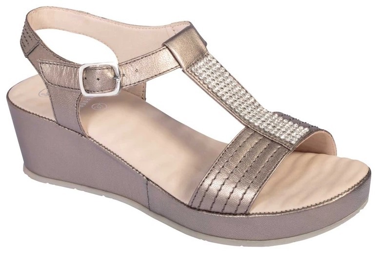 Catelyn je sandál Scholl, který se vyznačuje stélkou technologie Memory Cushion® Massage. Měkká stélka pomáhá znovu rozložit tlak, zatímco malé vlny jemně masírují chodidlo. Svršek z měkké semišové kůže jemně obepíná nohu, zatímco boční přezka zaručuje optimální nastavitelnost. Celé obuvi má nádech lesku a elegance. Klínový podpatek o průměru 5,5 cm je široký a přiměřený pro zaručení stability a pohodlí.