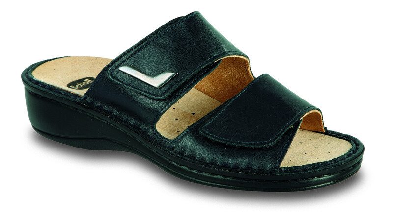 Zdravotní pantofle vyrobené z pravé telecí kůže.