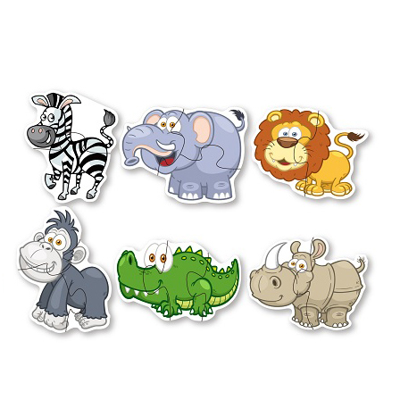 Krásné puzzle pro malé děti. Balení obsahuje šest roztomilých afrických zvířátek, které lze složit ze dvou až tří velkých dílků. Každé zvířátko lze složit zvlášť. Toto bezva puzzle je vyrobeno z lepenky. Pomáhá rozvíjet jemnou motoriku a představivost našich nejmenších. Je vhodné pro děti od 18... przeczytaj całość
