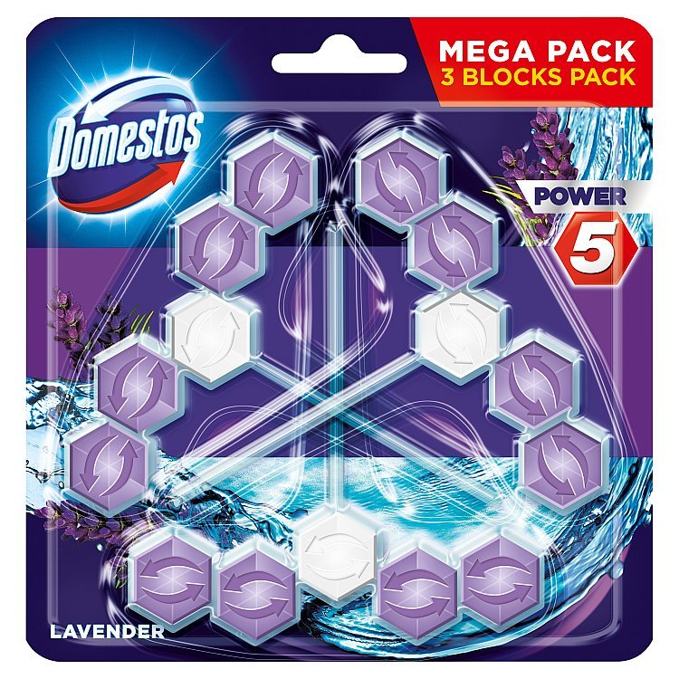 Domestos Power 5 Levandule tuhý WC blok 3 x 55 g