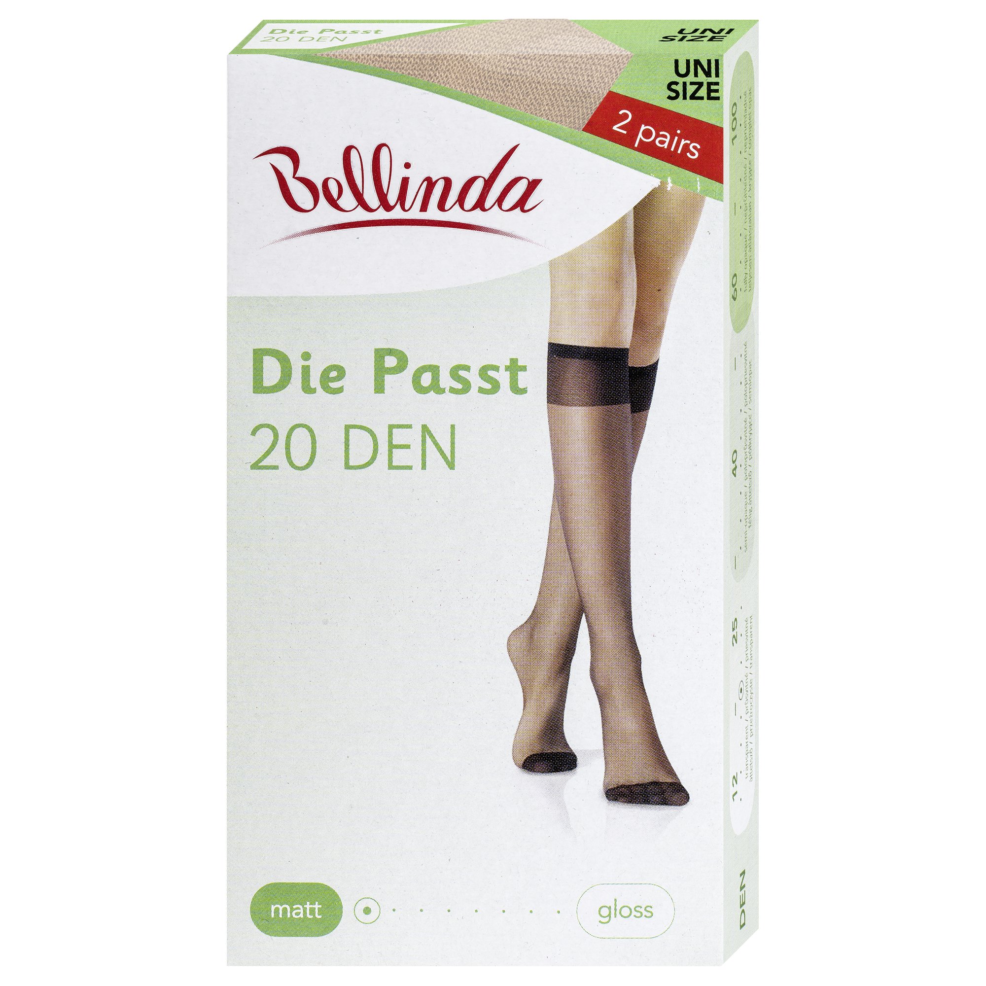 Bellinda punčochové podkolenky DIE PASST KNEE-HIGHS 20 DEN, univerzální velikost světle tělové 2 páry