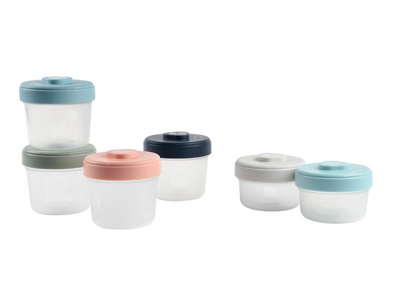 Zestaw pojemników Beaba do żywności dla dzieci z wysokiej jakości polipropylenu z hermetycznie zamykanym wieczkiem. Jedzenie w pojemnikach można zamrozić lub przechowywać w lodówce, a następnie podgrzewać w kuchence mikrofalowej, podgrzewaczu lub w Babycooku. Specjalnie zaprojektowana pokrywka i dno pojemnika pozwalają na zatrzaskiwanie pojemników jeden na drugim, co ułatwia ich przechowywanie w lodówce lub zamrażarce.