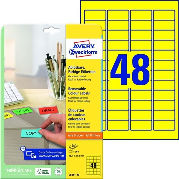 Snímatelné etikety, žluté, 45,7 x 21,2 mm, 960 ks