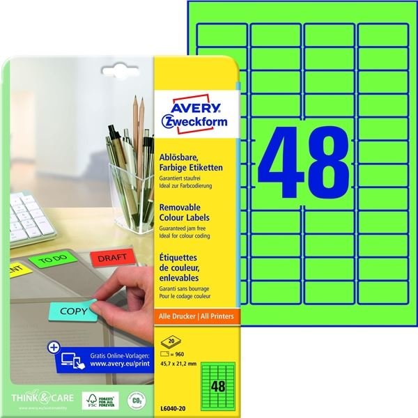 Snímatelné etikety, zelené, 45,7 x 21,2 mm, 960 ks