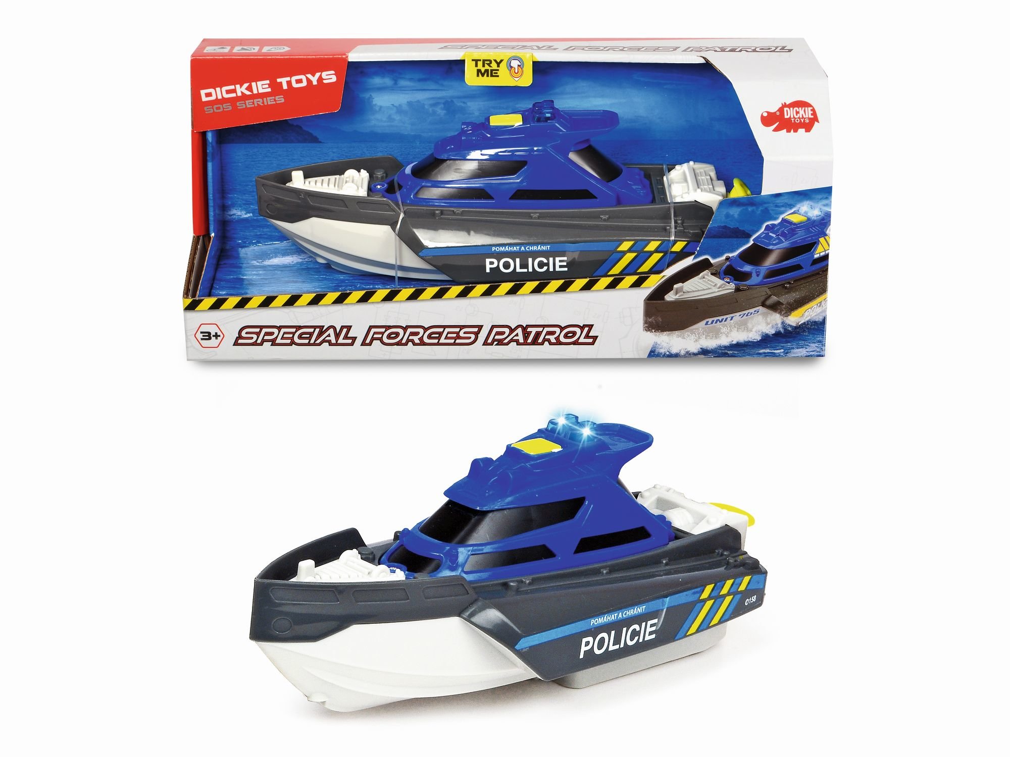 Policejní loď se světelnými a zvukovými efekty, natahování na šňůrku. Velikost 24 cm, měřítko 1:24. Česká verze. przeczytaj całość