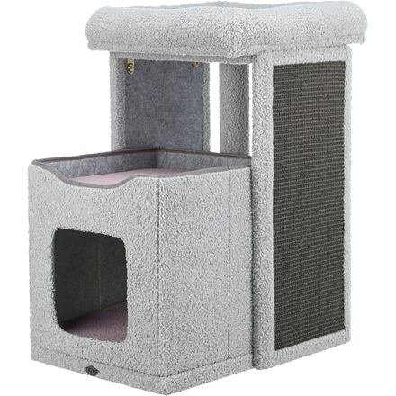 členité škrabadlo pro koťata jeskyně s polstrovanou lehací plochou a odnímatelnou oboustrannou lehací podložkou polstrované odpočívadlo s okrajem a čalouněnou lehací plochou materiál: plyš (270g/m2) vzhled beránčí kůže rozměry základny: 38 x 49 cm výška: 63 cm barva: šedá / lila przeczytaj całość