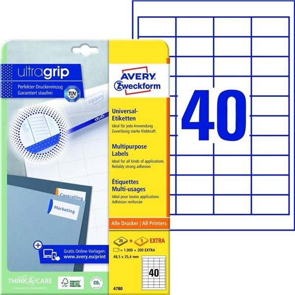 Univerzál.etikety Avery,bílé,48,5x25,4 mm,1200 ks