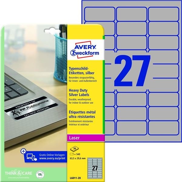 Vel.od.PE etikety Avery-stříbrné 63,5x29,6mm 540ks