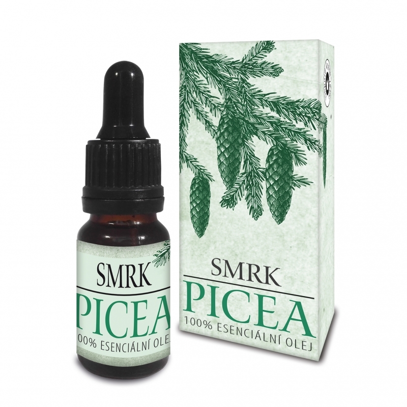 Zapach świerku jest podobny do zapachu sosny, ale jest ciemniejszy i ziemisty. Jego olejki eteryczne uspokajają i ugruntowują. Pąki, żywica, igliwie i pędy stosowane są w leczeniu dny, reumatyzmu, zapalenia oskrzeli oraz stanów zapalnych gardła i krtani. Olejek eteryczny ma właściwości przeciwskurczowe, pobudzające krążenie i przeciwzapalne. Jest antyseptyczny, antybakteryjny, skutecznie wspomaga układ moczowy i krążenia. Łagodzi kaszel, ułatwia odkrztuszanie i zmniejsza odkrztuszanie wydzieliny, łagodzi bóle, pomaga przy reumatyzmie, zapaleniu stawów oraz bólach mięśni i stawów. Stosowany jest jako środek do masażu po urazach.