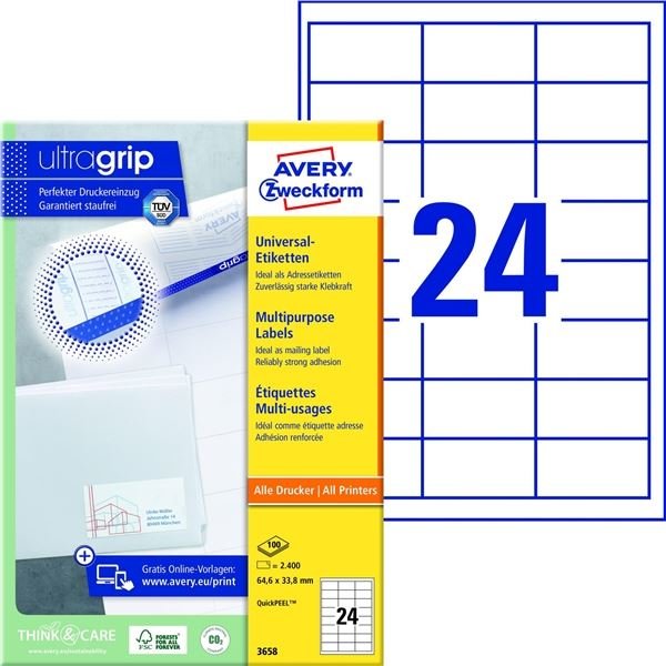 Univerzální etikety, 64,6 x 33,8 mm, 2400 ks