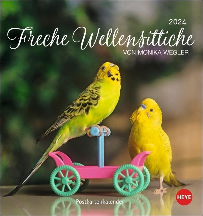 Freche Wellensittiche Postkartenkalender 2024 (niemiecki)