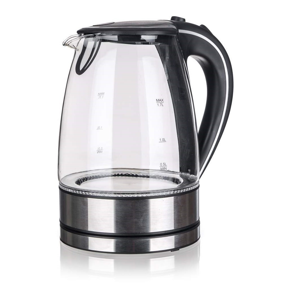 Moderní varná konvice s plochým dnem a skleněným tělem o objemu 1,7 l je nedílnou součástí každé kuchyně. Při provozu je obsah konvice osvícený vestavěnými LED diodami, podtrhující celkový luxusní vzhled konvice. Konvice je vybavena ochranou proti přehřátí, má základnu se středovým konektorem - volně otočný o 360 stupňů, vyjímatelný, omyvatelný filtr a automatické / manuální vypnutí.