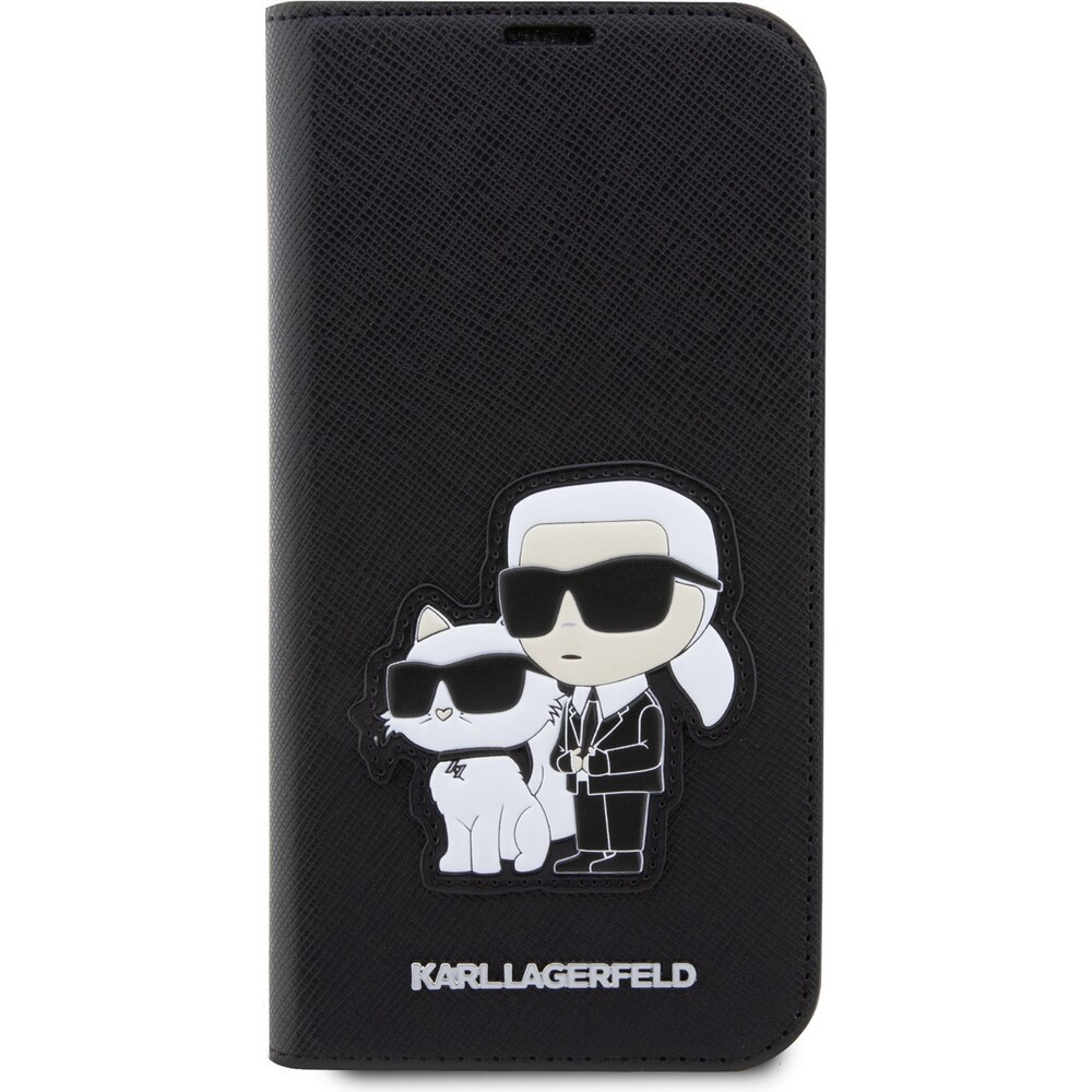 Karl Lagerfeld PU Saffiano Karl and Choupette NFT flipové pouzdro pro iPhone 13 Pro Max černé