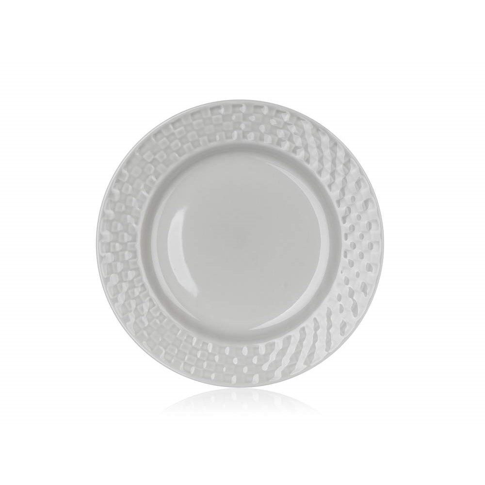 Talíř mělký o průměru 26 cm s reliéfem, je vyrobený z kvalitního porcelánu. Vhodný na každodenní servírování pokrmů. Talíř lze použít do mikrovlnné trouby a mýt v myčce na nádobí. Vyrobeno v Indonesii. przeczytaj całość