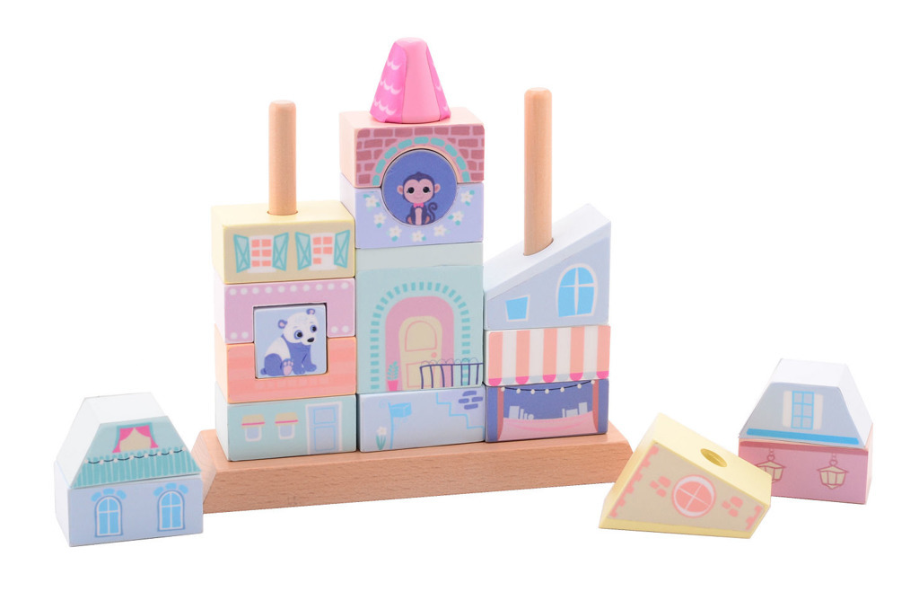Dřevěné kostky se stojánkem. Sada obsahuje kostky na stavbu domečku s dveřmi, okénky atp. Vyrobeno z kvalitního bukového dřeva, barveno nezávadnými barvami, testováno v EU. przeczytaj całość
