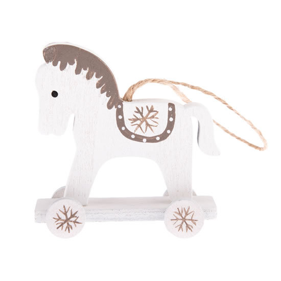 Dřevěný závěsný koník na kolečkách - bílý