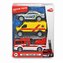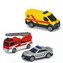 - Zestaw zawiera 3 pojazdy: ambulans, wóz strażacki i radiowóz.