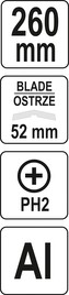 - Szerokość ostrza: 52 mm