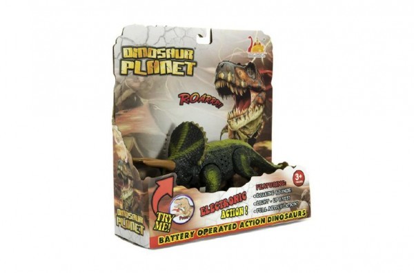 Dinosaurus plast 23-25cm na baterie se zvukem a světlem 2druhy v krabici 24x25x9cm