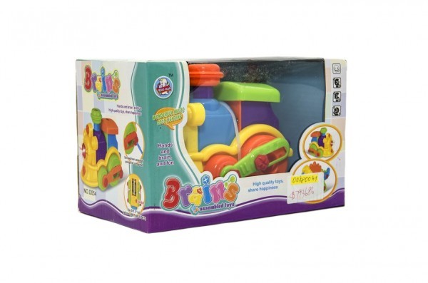 Vláček/ Lokomotiva šroubovací plast 14cm na baterie se zvukem se světlem v krabici 20x13x12cm