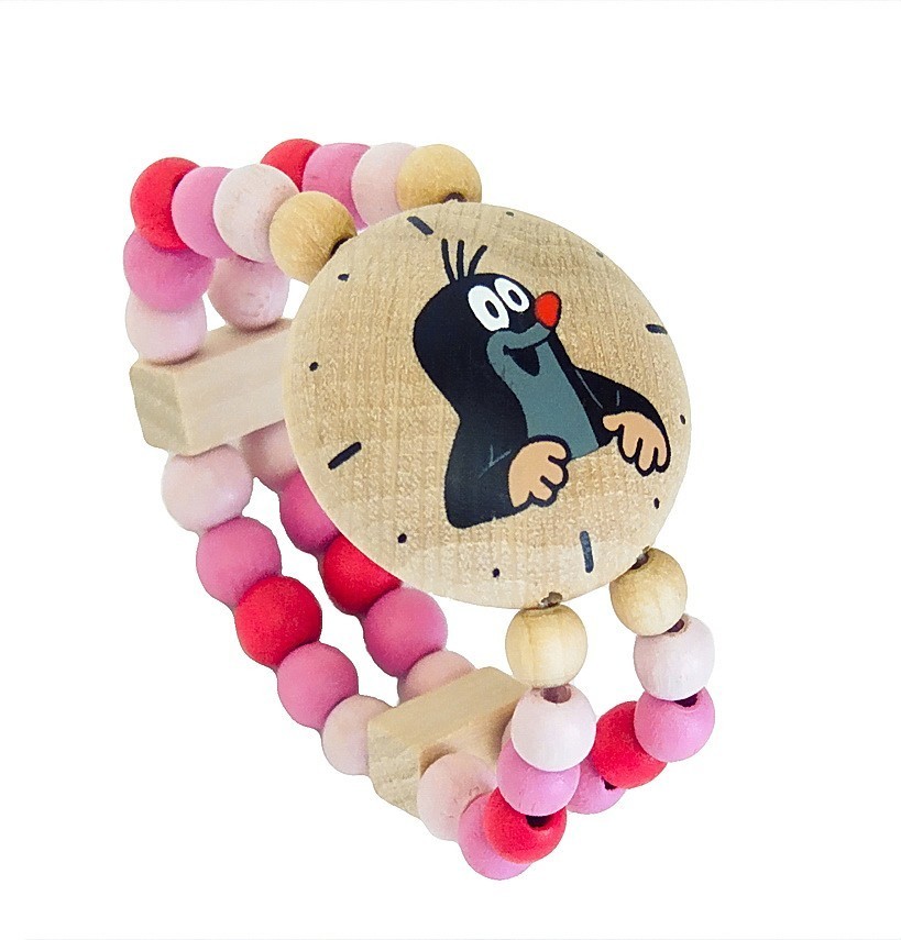 Drewniany zegarek dziewczęcy z obrazkiem krecika. Nawleczony na delikatnej gumeczce. Nieodpowiedni dla dzieci poniżej 3 roku życia. Zawiera małe elementy. Produkt jest bezpieczny dla zdrowia. przeczytaj całość
