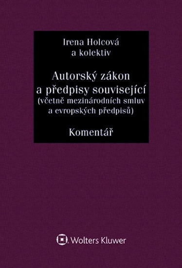 Komentář zkušeného autorského kolektivu pod vedení dr. Ireny Holcové přináší výklad nejen k autorskému zákonu č. 121/2000 Sb., ale i k mezinárodním smlouvám (např. Revidovaná úmluva bernská, Římská úmluva apod.) a k evropským předpisům (např. směrnice o elektronickém obchodu apod.). Komentář...
