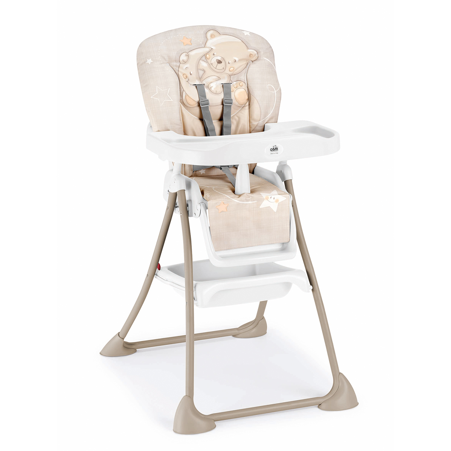 Židlička pro stolování byla vystavena testům kontrolující boční, přední a zadní stabilitu, aby se zabránilo převrácení dítěte při sezení na ní – její stabilita a pevnost je tak potvrzena a zaručena náročnými testy.Sklon opěradla nastavitelný do 3 poloh, 2polohová opěrka nohou a měkké polstrování...