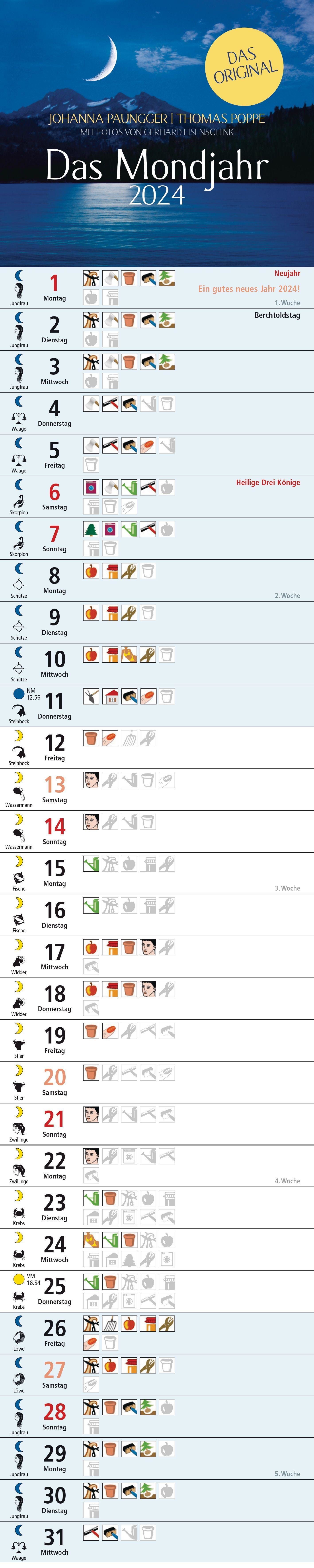 Das Mondjahr 2024 - Streifenkalender (niemiecki)