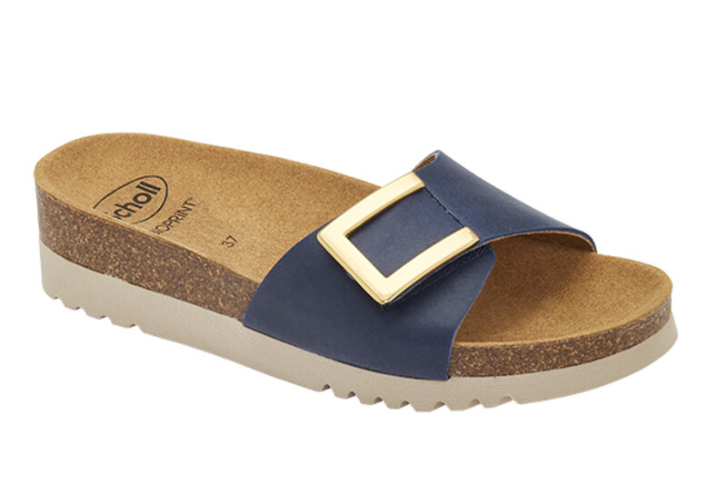 Scholl pantofle MONTEREY se pyšní neokoukatelným designem.Svršek ze stařené kůže v modré barvě barvě zdobený zlatou obdélníkovou přezkou, podrážka s světlou stélkou - vše vyladěné do posledního detailu.Pantofle Monterey lze skutečně nosit po celý den díky typickému pohodlí Scholl, které je...