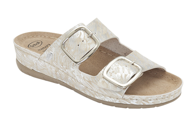 SCHOLL Aberdeen - dámské zdravotní pantofle Pantofle nabízejí rafinovanost a zároveň jednoduchost pro celodenní nošení v kombinaci s různým oblečením, vkusem a věkem. Zdravotní stélka z pravého semiše a 4 cm klín zaručuje správné zvednutí, podrážka je super lehká a pružná. Stélka s technologií...