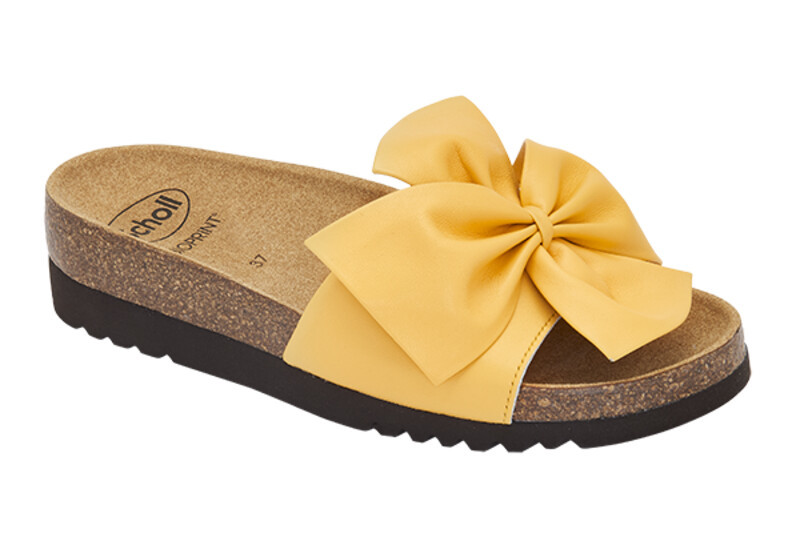 Scholl BOWY - dámská zdravotní volnočasová obuv Maxi mašle na svrchní části boty ozvláštňuje design sandálů Bowy a vaše oblečení a letní outfit doplní romantikou a něžností.Semišový kožený svršek a podšívka z mikrovlákna zaručí maximální komfort a pohodu při jejich nošení.Stélka je...