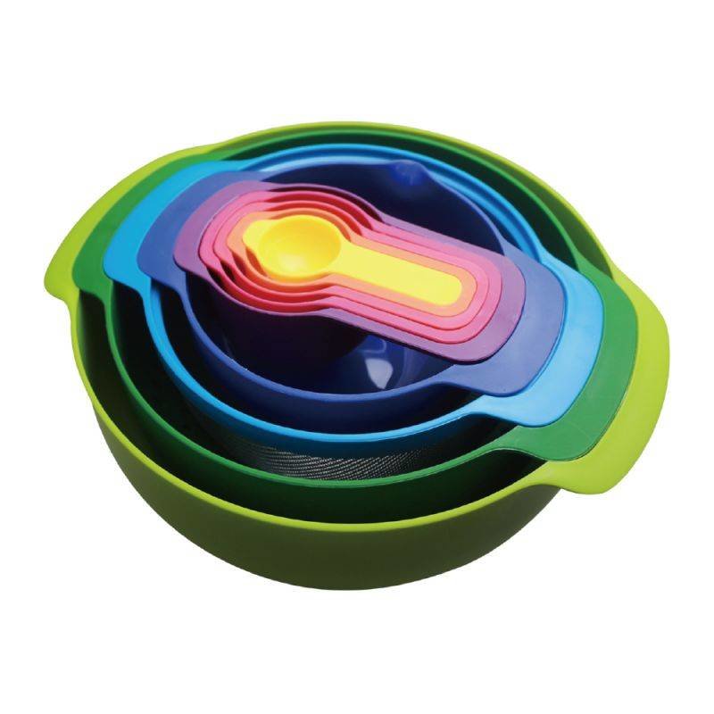 Sada 10 dílů misky, odměrky, cedníky DUHA - Cakesicq