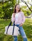 „Sháníš společnici, se kterou budeš tvořit neoddělitelnou dvojku při cestování? A víš, že přesně takovou tu pro Tebe máme? Abychom byli konkrétní, řeč je o cestovní tašce. O takové tašce, která Ti pomůže vyřešit jakoukoli situaci, do které se při cestování dostaneš. Zpříjemní Ti třeba dlouhou jízdu vlakem nebo i spontánní situace, jako je třeba cesta do porodnice. Tak co, už máš svou “number one“?“