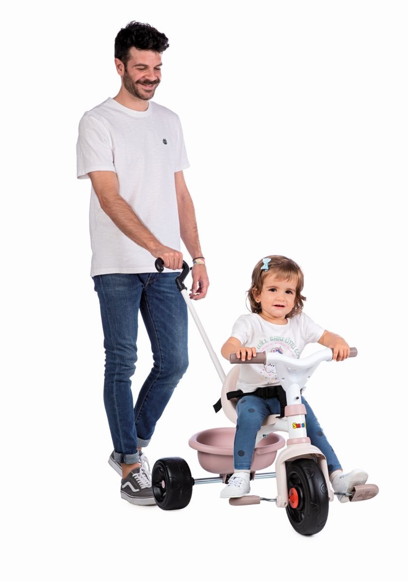 Trójkołowy rowerek w różowym kolorze ma metalową ramę, odczepianą i regulowaną rączkę do prowadzenia, antypoślizgowe pedały z możliwością zablokowania pedałowania, regulowane ergonomiczne siedzenie w 2 pozycjach, pas bezpieczeństwa, odchylany plastikowy koszyk. Wymiary: 68 x 52 x 52 cm. Waga: 3,6... przeczytaj całość