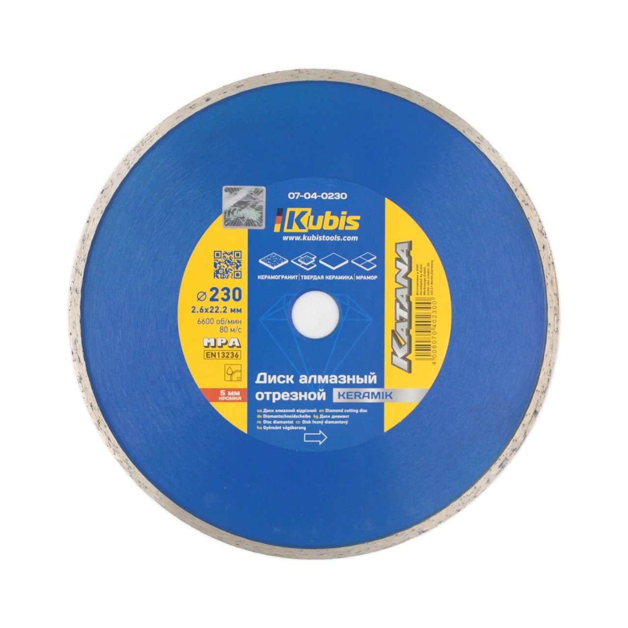 Kotouč diamantový řezný KERAMIK 230*22.2 mm, 2.6*5 mm, KATANA | 07-04-0230