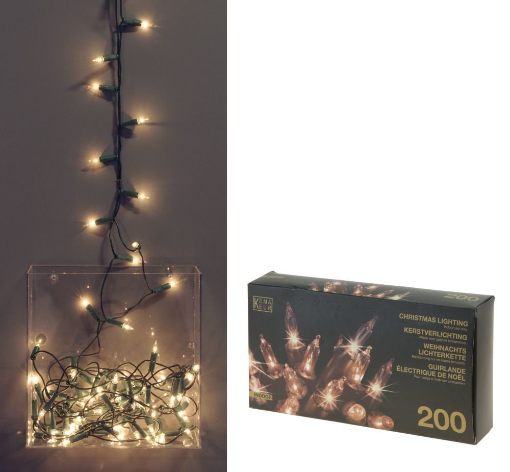 Vánoční světýlka - 200 žárovek (+ 4 náhradní v balení), žárovky mají mezi sebou 10 cm mezeru. Barva - teplá bílá. Pouze pro vnitřní použití. Rozměry - délka 21,4 m (19,9 m kabel se žárovkami + 1,5m přívodní kabel). przeczytaj całość