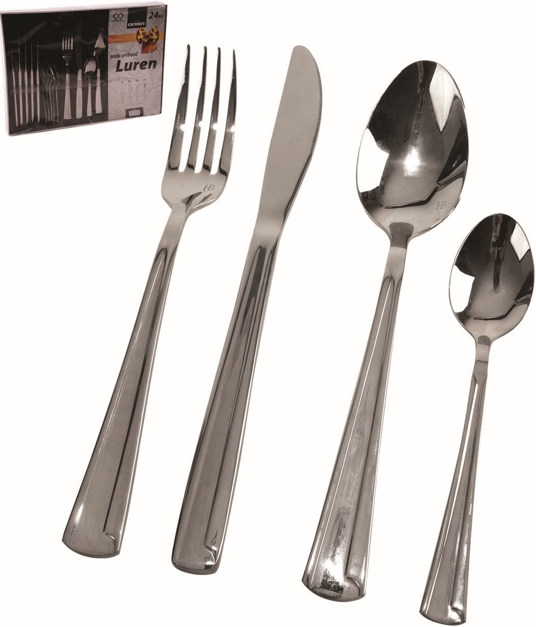 Sada příborů s protlačovaným vzorem. Sada obsahuje - 6x lžíce (délka 20cm), 6x vidlička (délka 20cm), 6x nůž (délka 23cm) a 6x čajová lžička (délka 14cm). Sada 24 ks. Příbory lze mýt v myčce na nádobí, ale pokud chcete zachovat jejich lesklý a neporušený povrch, pak to vzhledem k působení... przeczytaj całość