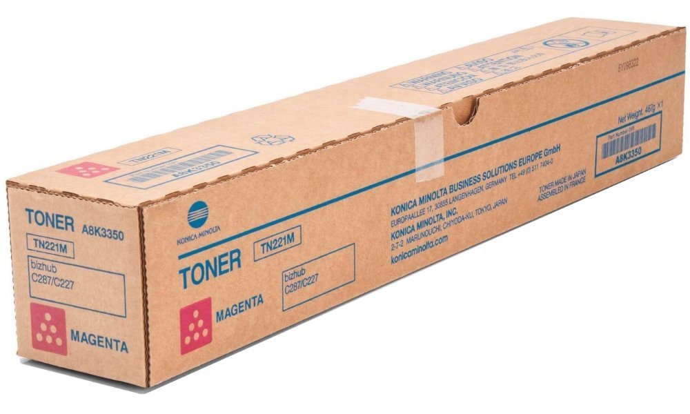 Konica Minolta TN221M (A8K3350)ZÁKLADNÍ SPECIFIKACEPro tiskárny: Konica Minolta bizhub C287, C227Barva: červenáVýdrž: 21000 stran przeczytaj całość