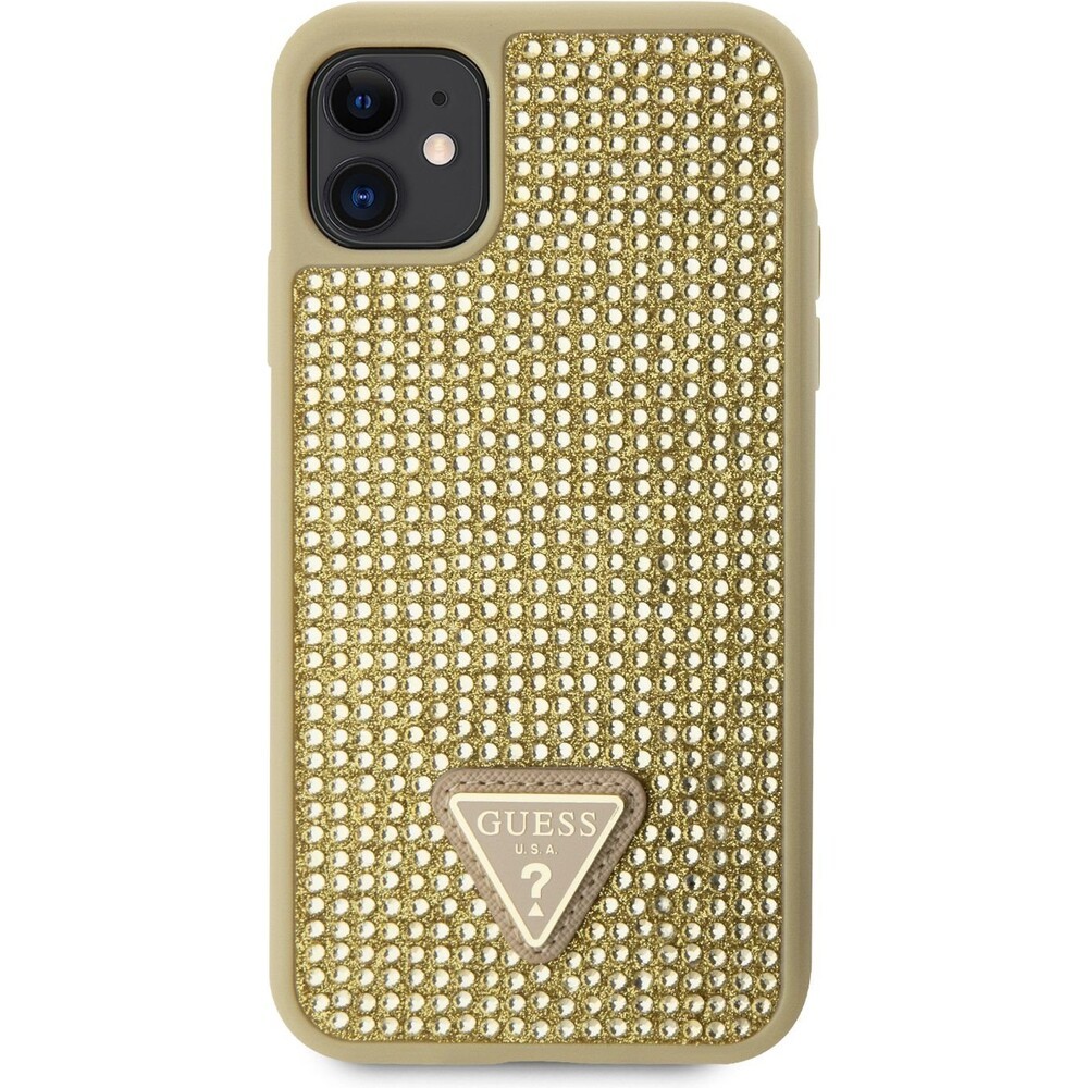 Guess Rhinestones Triangle Metal Logo kryt pro iPhone 11 zlatý