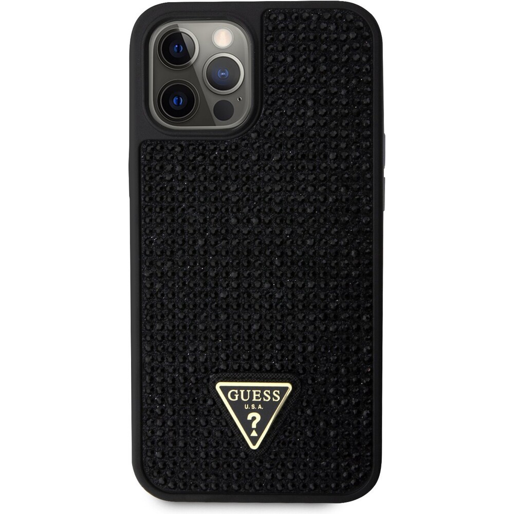 Guess Rhinestones Triangle Metal Logo kryt pro iPhone 12 Pro Max černý