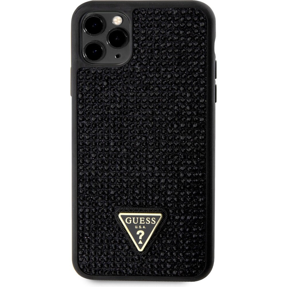 Guess Rhinestones Triangle Metal Logo kryt pro iPhone 11 Pro Max černý