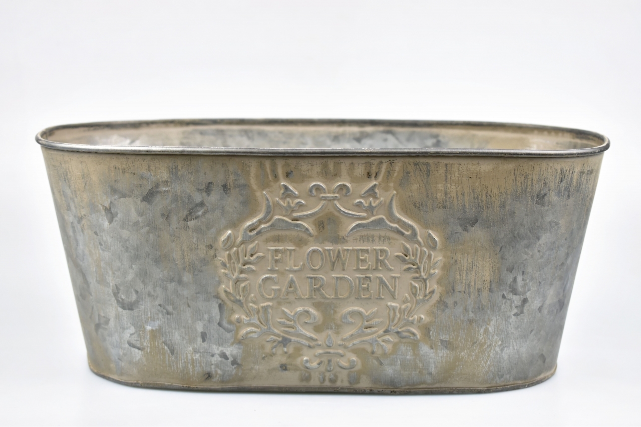 Oválný plechový květináč Flower garden 12,5x30x17 cm šedý