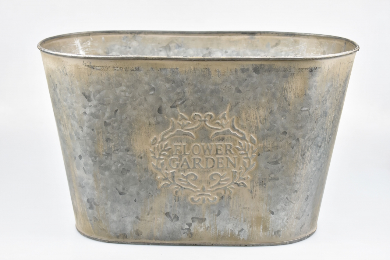 Oválný plechový květináč Flower garden 20,5x33,5x18 cm šedý