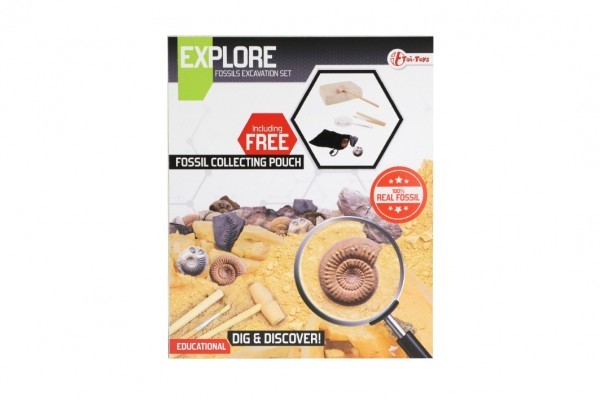 Sada archeolog s fosílií dřevo/plast s doplňky v krabičce 17,5x21x6cm