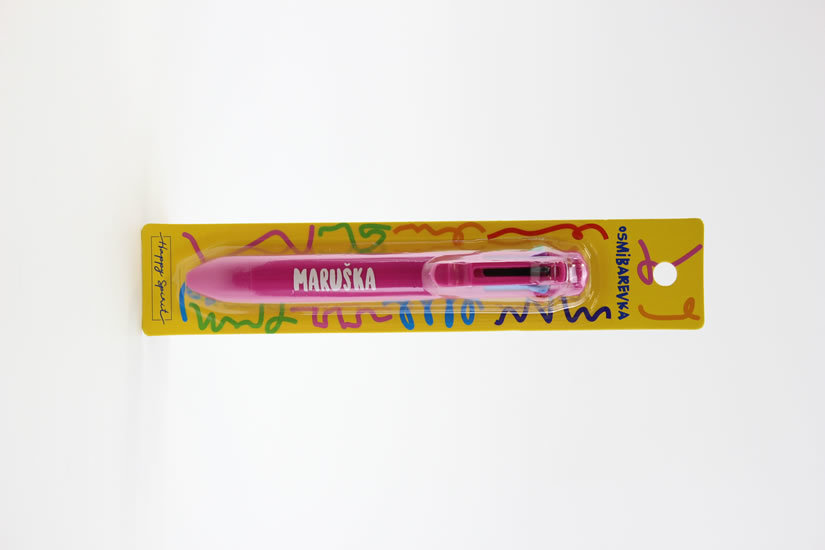 Osmibarevná propiska se jménem či originálním nápisem nesmí chybět v žádném penálu! Propiska píše těmito barvami: černá, hnědá, růžová, fialová, červená, oranžová, zelená a modrá. przeczytaj całość