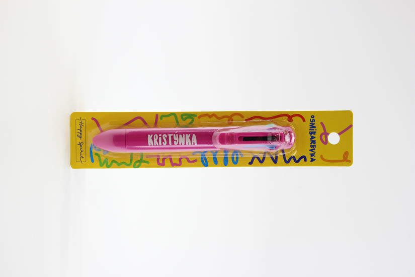 Osmibarevná propiska se jménem či originálním nápisem nesmí chybět v žádném penálu! Propiska píše těmito barvami: černá, hnědá, růžová, fialová, červená, oranžová, zelená a modrá. przeczytaj całość