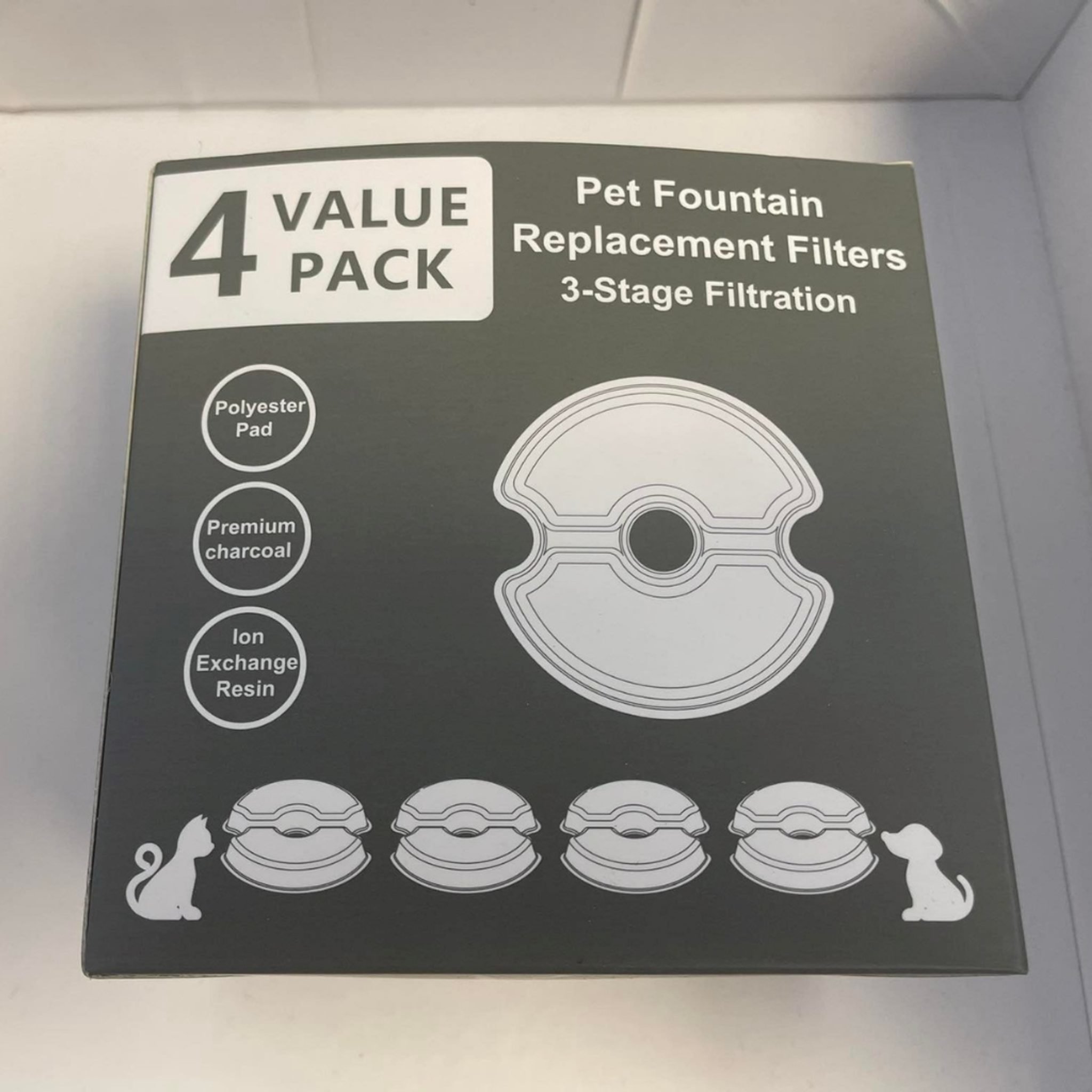 Filtry wymienne do fontanny Petwant PWS-101. Zadaniem filtra jest zmiękczenie wody i jednoczesne pochłanianie zanieczyszczeń. Należy go wymieniać mniej więcej po miesiącu użytkowania.