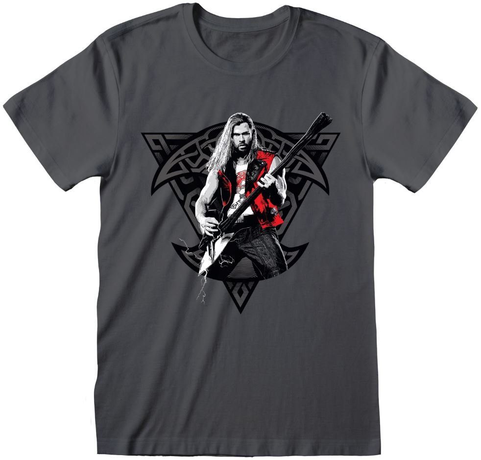 Oficiální produkt - tričko z katalogu zboží s licencí Marvel. Zboží je legálně licencováno a prodáváno se souhlasem vlastníků licenčních práv.Šedé pánské tričko s motivem superhrdiny Thor hrajícího na kytaru z filmu Thor: Love and Thunder od společnosti Marvel. Velikost trička: 2XL Materiál...
