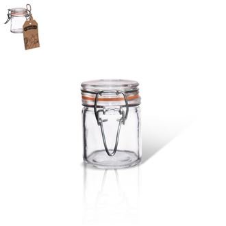 Skleněná dóza.Dóza skleněná patentní s klasickým silikonovým těsněním a drátěným uzávěrem. Protlačený dekor srdce. Rozměry: dia 4,5 cm, výšku 6 cm, objem 0,05 l.Materiál : sklo. przeczytaj całość
